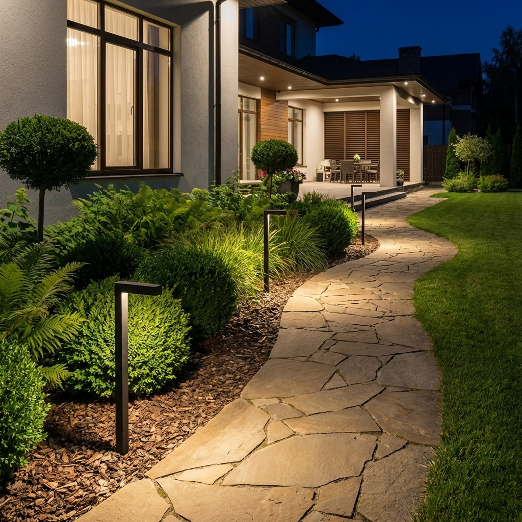 Reinstall the fixture body onto the stake and lay the power cable into the slotted relief on the stake.