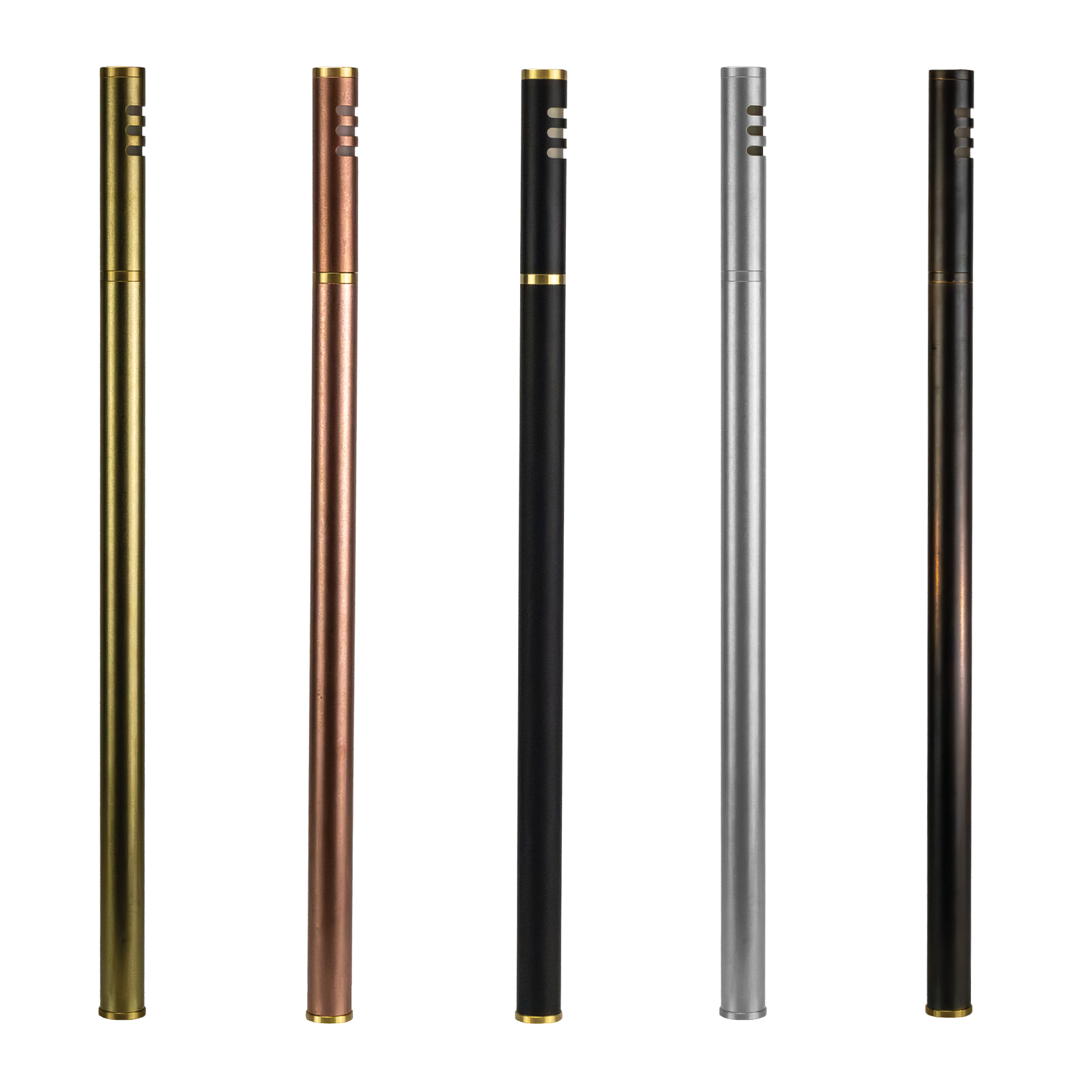 The Saguaro mini bollard is available in copper, brass, black baked enamel, stainless steel and weathered brass.
